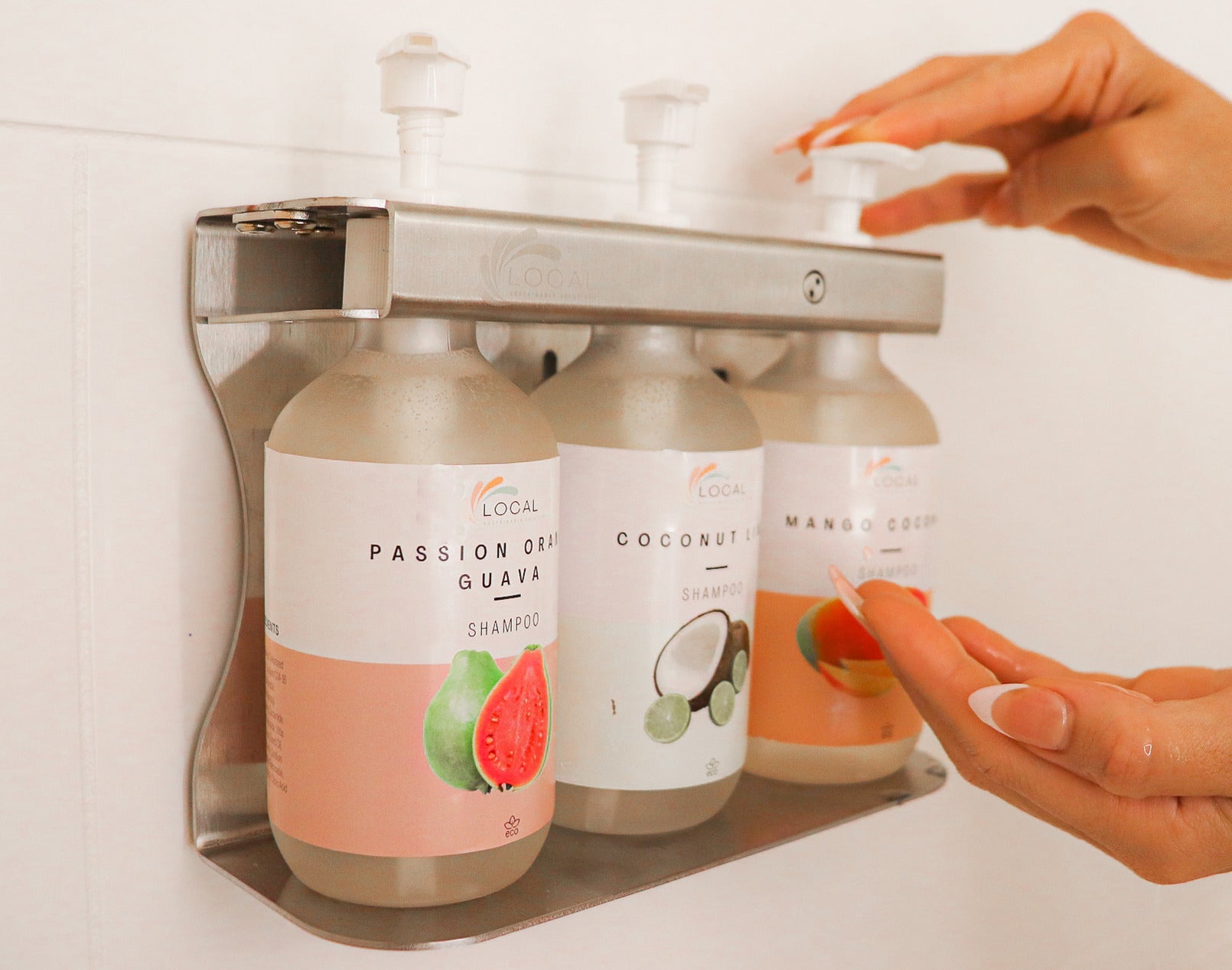 Fully customizable labeling for your dispensers to match your brand and the decor of your hotel. Choose between stainless steel or plastic pumps to fit your needs.